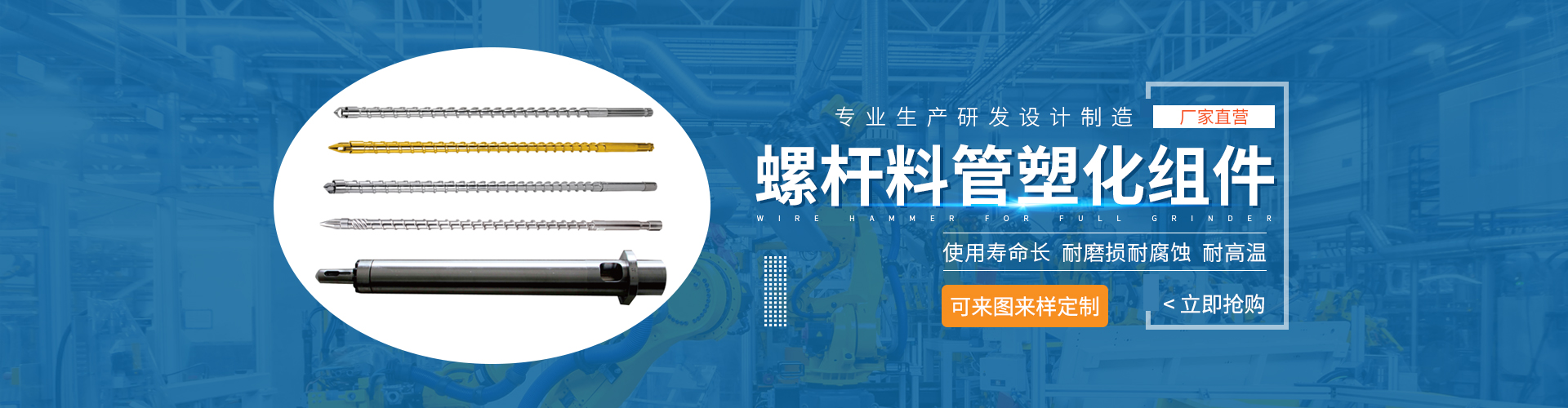 經過23年在塑機行業的沉淀,我們發現在塑料制品成型中塑化組件是最容易出現問題的,經常碰到“痛點”。如:混色不均,重復精度低,過膠頭易斷、防火劑塑化不良,透明產品發黃、黑點,料管易開裂,螺桿料筒不耐高溫、不耐高壓,被磨損、被腐蝕等等。公司于2011年引進核心人才,自主研發合金新材料,購買高端設備,經過幾年的不斷試制,成功解決了這些痛點。并用工匠精神精益生產為客戶定制塑料機械核心零部件--機筒螺桿塑化組件。